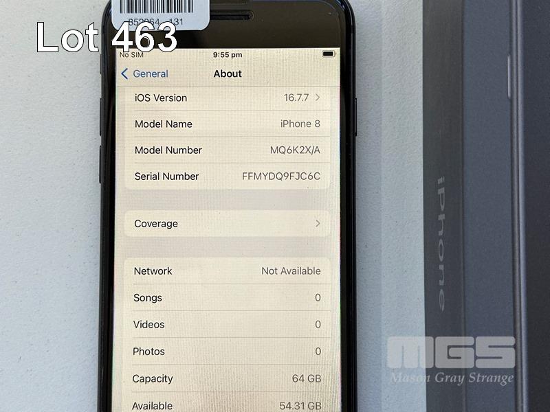 APPLE iPHONE 8, 64GB, SPACE GREY, MODEL MQ6K2X/A, BATTERY HEALTH 87% (NO CABLE, NO CHARGER) S/N:FFMYDQ9FJC6C