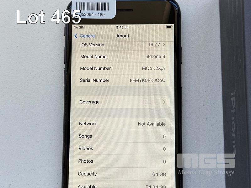 APPLE iPHONE 8, 64GB, SPACE GREY, MODEL MQ6K2X/A, BATTERY HEALTH 86% (NO CABLE, NO CHARGER) S/N:FFMYK0PKJC6C