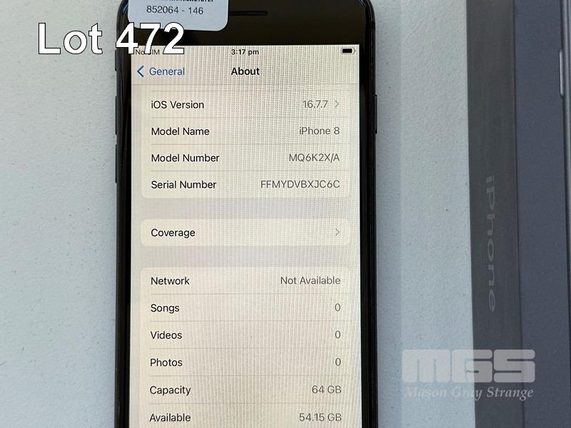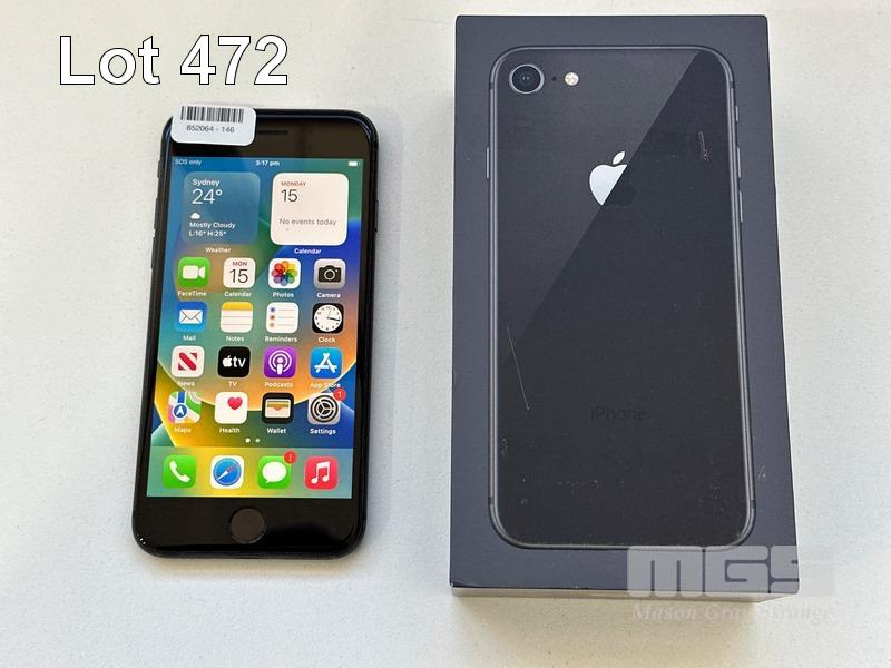 APPLE iPHONE 8, 64GB, SPACE GREY, MODEL MQ6K2X/A, BATTERY HEALTH 85% (NO CABLE, NO CHARGER) S/N:FFMYDVBXJC6C