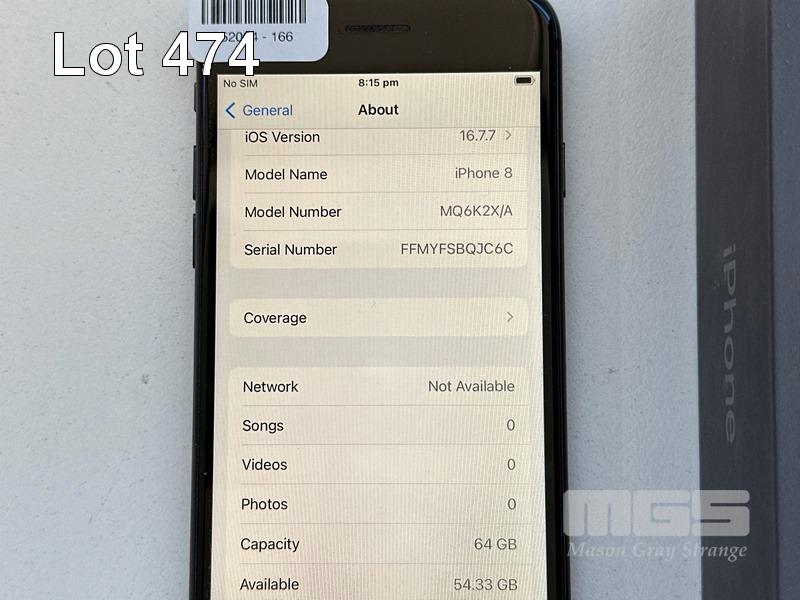 APPLE iPHONE 8, 64GB, SPACE GREY, MODEL MQ6K2X/A, BATTERY HEALTH 84% (NO CABLE, NO CHARGER) S/N:FFMYFSBQJC6C