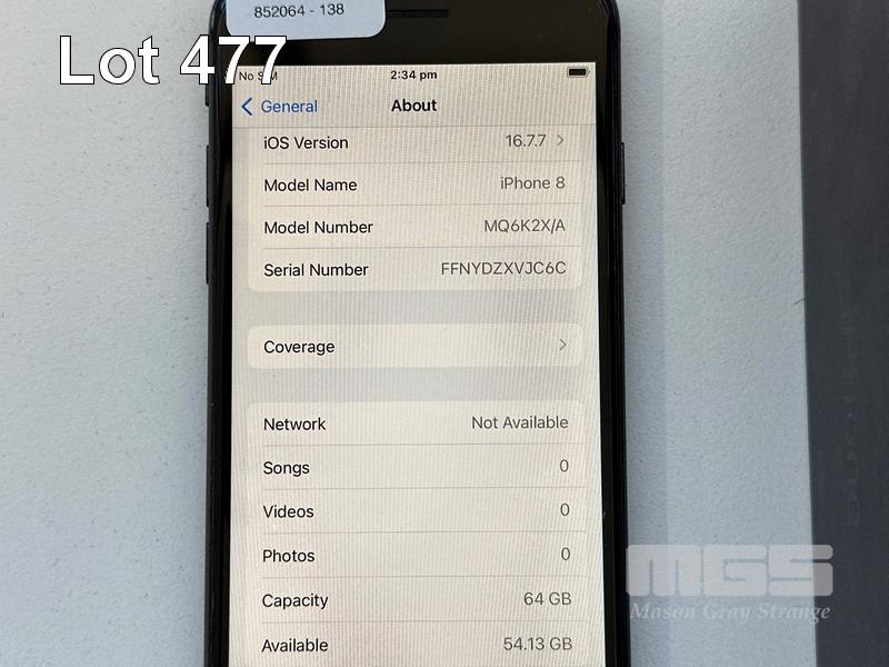 APPLE iPHONE 8, 64GB, SPACE GREY, MODEL MQ6K2X/A, BATTERY HEALTH 83% (NO CABLE, NO CHARGER) S/N:FFNYDZXVJC6C