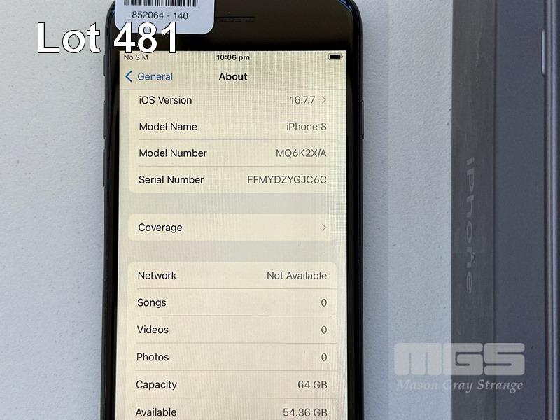 APPLE iPHONE 8, 64GB, SPACE GREY, MODEL MQ6K2X/A, BATTERY HEALTH 80% (NO CABLE, NO CHARGER) S/N:FFMYDZYGJC6C