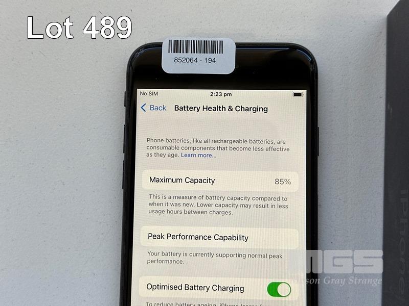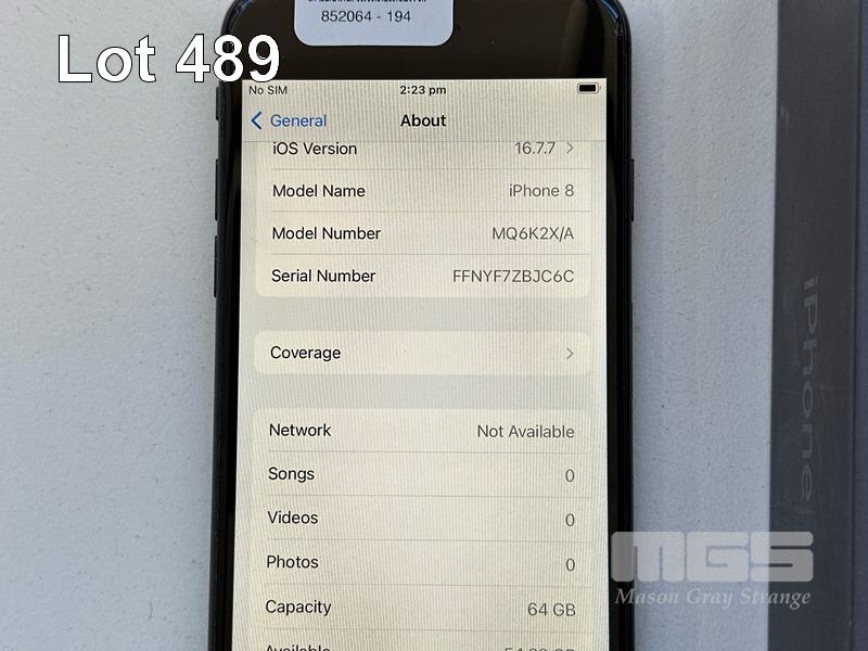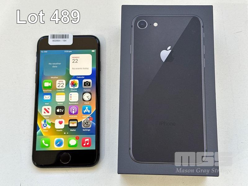 APPLE iPHONE 8, 64GB, SPACE GREY, MODEL MQ6K2X/A, BATTERY HEALTH 85% (NO CABLE, NO CHARGER) (NOTE: MINOR DAMAGE) S/N:FFNYF7ZBJC6C