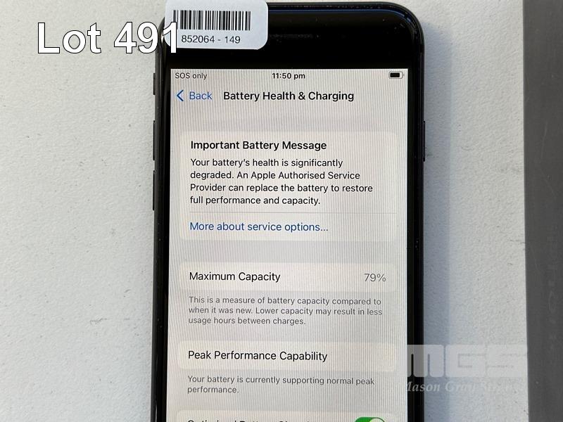 APPLE iPHONE 8, 64GB, SPACE GREY, MODEL MQ6K2X/A, BATTERY HEALTH 79% (NO CABLE, NO CHARGER) (NOTE: BATTERY SERVICE MESSAGE) S/N:FFNYD3JLJC6C
