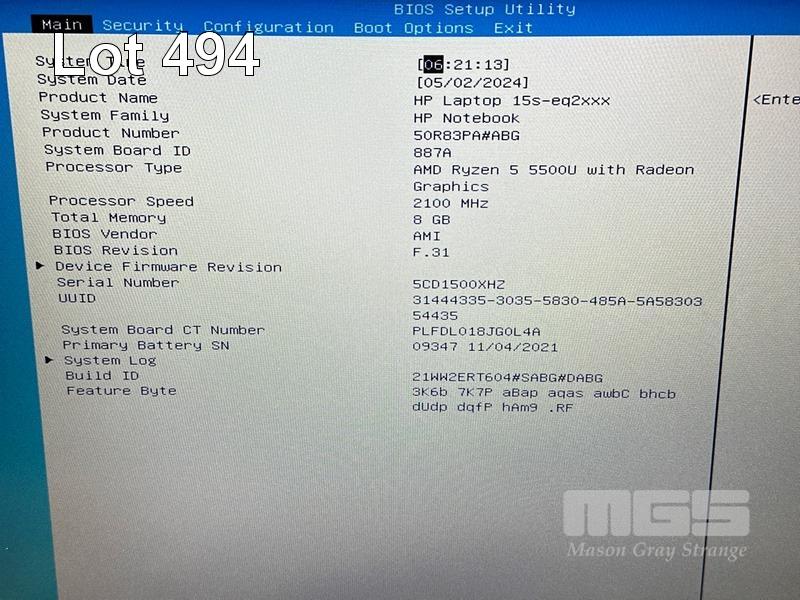 LAPTOP, HP 15s-eq2xxx, AMD RYZEN 5 5500U WITH RADEON GRAPHICS @ 2.1GHz, 8GB RAM, 256GB SSD, 15.6" WIDESCREEN (1920x1080), Wi-Fi, BLUETOOTH, WINDOWS 11 PRO INSTALLED & POWER SUPPLY S/N:5CD1500XHZ