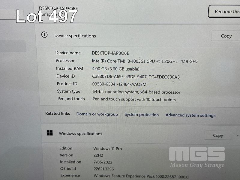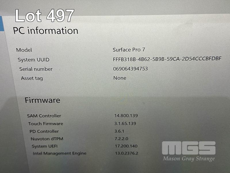 TABLET PC, MICROSOFT SURFACE PRO 7, MODEL 1866, CORE i3 1005G1 (10TH GEN) @ 1.2GHz, 4GB RAM, 128GB SSD, 12.3" TOUCHSCREEN (2736x1824), INTEL UHD GRAPHICS, Wi-Fi, BLUETOOTH, WINDOWS 11 PRO INSTALLED, KEYBOARD TYPE COVER & POWER SUPPLY S/N:069064394753