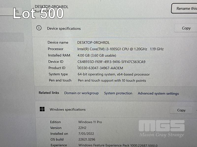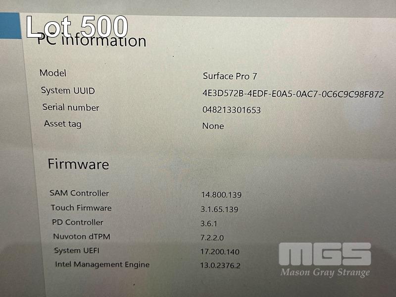 TABLET PC, MICROSOFT SURFACE PRO 7, MODEL 1866, CORE i3 1005G1 (10TH GEN) @ 1.2GHz, 4GB RAM, 128GB SSD, 12.3" TOUCHSCREEN (2736x1824), INTEL UHD GRAPHICS, Wi-Fi, BLUETOOTH, WINDOWS 11 PRO INSTALLED, KEYBOARD TYPE COVER & POWER SUPPLY S/N:048213301653