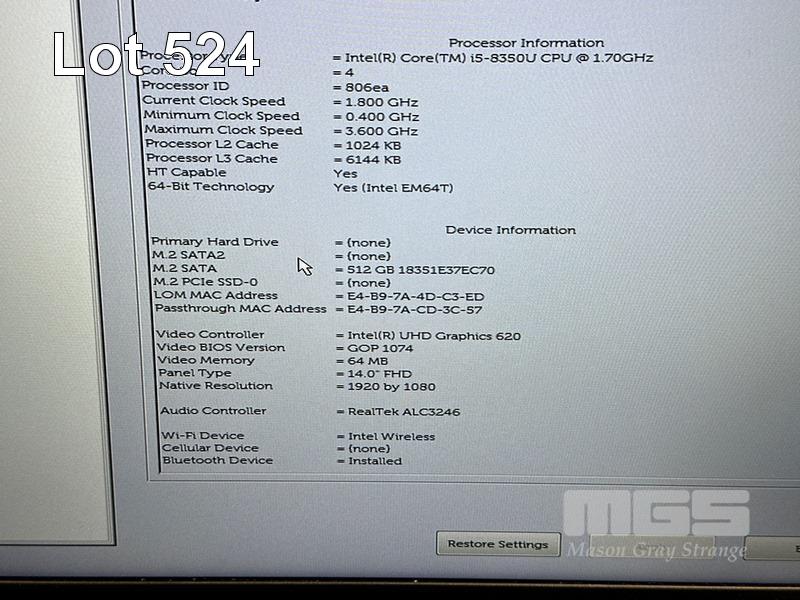 LAPTOP, DELL LATITUDE 5490, CORE i5 8350U (8TH GEN) @ 1.7GHz, 8GB DDR4 RAM, 512GB M.2 SSD, 14" WIDESCREEN (1920x1080), INTEL UHD GRAPHICS 620, Wi-Fi, BLUETOOTH, WINDOWS 11 HOME INSTALLED & POWER SUPPLY S/N:2HYMHR2