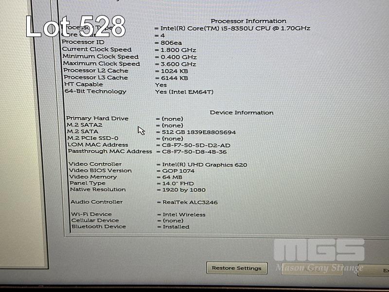 LAPTOP, DELL LATITUDE 5490, CORE i5 8350U (8TH GEN) @ 1.7GHz, 8GB DDR4 RAM, 512GB M.2 SSD, 14" WIDESCREEN (1920x1080), INTEL UHD GRAPHICS 620, Wi-Fi, BLUETOOTH, WINDOWS 11 HOME INSTALLED & POWER SUPPLY (NOTE: MINOR MARKS ON SCREEN) S/N:10QPMV2
