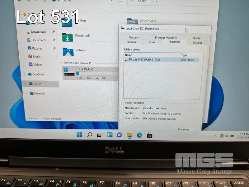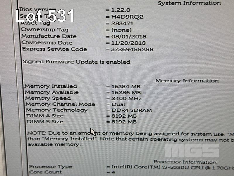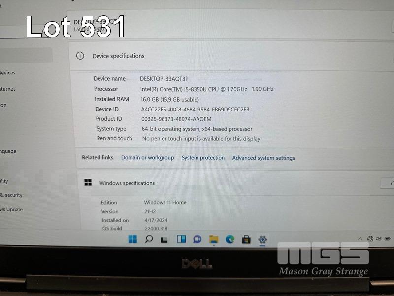 LAPTOP, DELL LATITUDE 5490, CORE i5 8350U (8TH GEN) @ 1.7GHz, 16GB DDR4 RAM, 512GB M.2 SSD, 14" WIDESCREEN (1920x1080), INTEL UHD GRAPHICS 620, Wi-Fi, BLUETOOTH, WINDOWS 11 HOME INSTALLED & POWER SUPPLY (NOTE: BATTERY NOT HOLDING CHARGE, MARKS ON SCREEN) S/N:H4D9RQ2