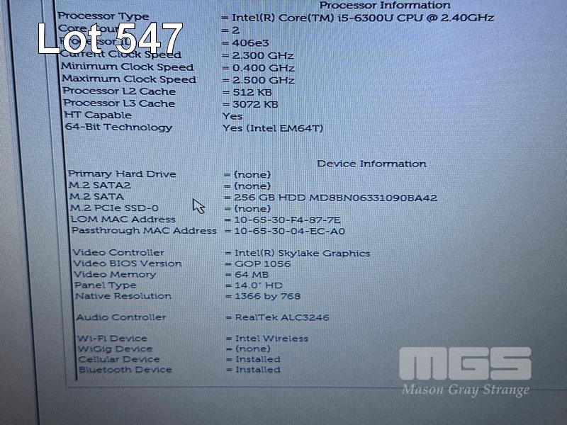 LAPTOP, DELL LATITUDE 5480, CORE i5 6300U (6TH GEN) @ 2.4GHz, 8GB DDR4 RAM, 256GB M.2 SSD, 14" WIDESCREEN (1366x768), INTEL HD GRAPHICS 520, Wi-Fi, CELLULAR, BLUETOOTH, WINDOWS 10 PRO INSTALLED & POWER SUPPLY