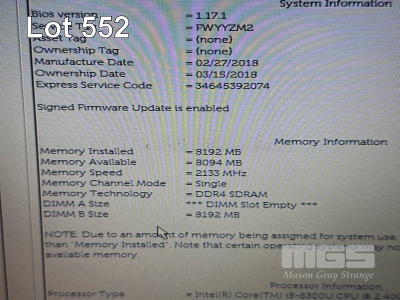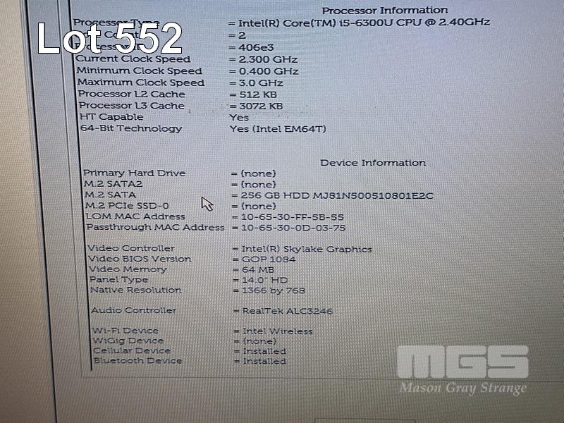 LAPTOP, DELL LATITUDE 5480, CORE i5 6300U (6TH GEN) @ 2.4GHz, 8GB DDR4 RAM, 256GB M.2 SSD, 14" WIDESCREEN (1366x768), INTEL HD GRAPHICS 520, Wi-Fi, CELLULAR, BLUETOOTH, WINDOWS 10 PRO INSTALLED & POWER SUPPLY (NOTE: MARKS ON SCREEN) S/N:FWYYZM2