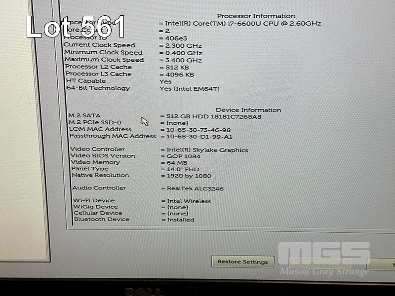 LAPTOP, DELL LATITUDE 7480, CORE i7 6600U (6TH GEN) @ 2.6GHz, 16GB DDR4 RAM, 512GB M.2 SSD, 14" WIDESCREEN (1920x1080), INTEL HD GRAPHICS 520, Wi-Fi, BLUETOOTH, WINDOWS 10 HOME INSTALLED (NO POWER SUPPLY) (NOTE: BATTERY NOT HOLDING CHARGE, NETWORK PORT COVER MISSING) S/N:CSWK5Q2