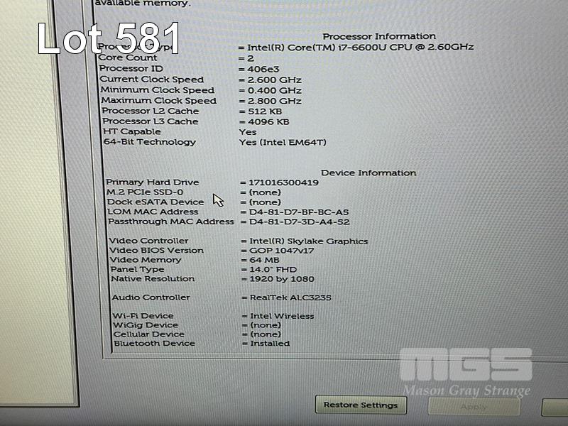 LAPTOP, DELL LATITUDE E7470, CORE i7 6600U (6TH GEN) @ 2.6GHz, 16GB DDR4 RAM, 512GB M.2 SSD, 14" WIDESCREEN (1920x1080), INTEL HD GRAPHICS 520, Wi-Fi, BLUETOOTH, WINDOWS 10 HOME INSTALLED, DOCKING STATION & POWER SUPPLY (NOTE: BATTERY NOT HOLDING CHARGE, MINOR MARKS ON SCREEN) S/N:8ZGG2G2