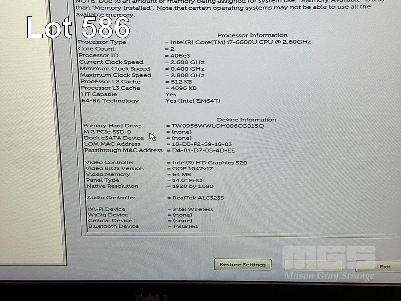 LAPTOP, DELL LATITUDE E7470, CORE i7 6600U (6TH GEN) @ 2.6GHz, 16GB DDR4 RAM, 512GB M.2 SSD, 14" WIDESCREEN (1920x1080), INTEL HD GRAPHICS 520, Wi-Fi, BLUETOOTH, WINDOWS 10 HOME INSTALLED, DOCKING STATION & POWER SUPPLY (NOTE: MINOR DAMAGE TO CASING) S/N:160SRF2