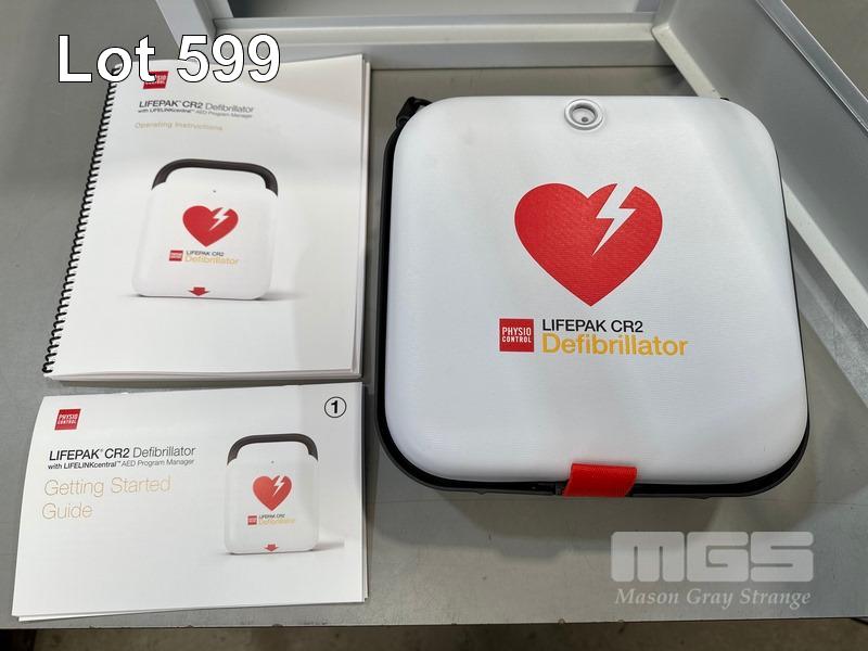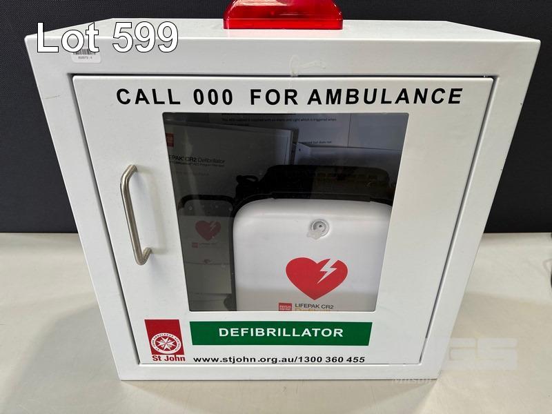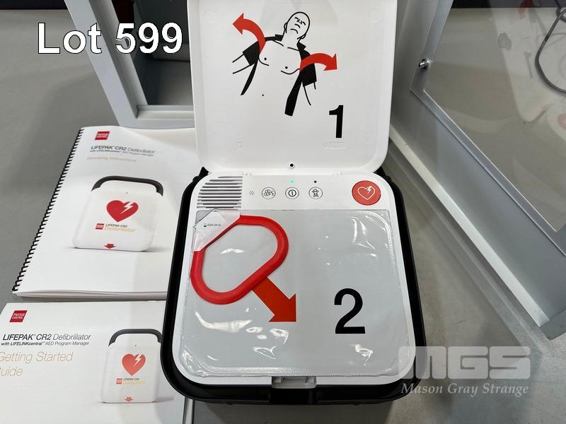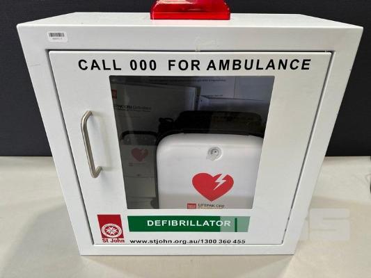 PHYSIO CONTROL LIFEPAK CR2 DEFIBRILLATOR IN CABINET