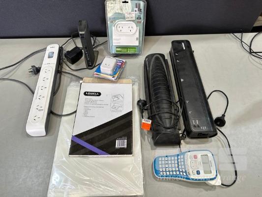 BELKIN POWERBOARD, KENSINGTON USB 3.0 DOCKING STATION, LAMINATORS, BROTHER HAND HELD LABELLER, POWER CENTER & TRAVEL ADAPTOR