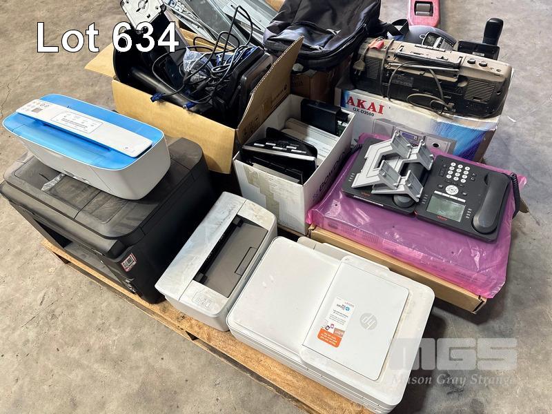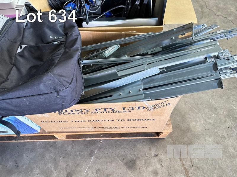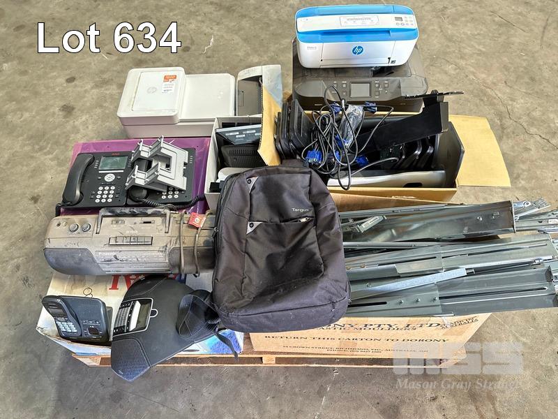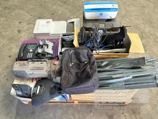 1 x PALLET LOT INCLUDING STEREOS, RACKMOUNT SERVER RAILS, BACKPACK, ONITOR STANDS, HP PRINTERS, AVAYA PHONES, ROUTERS