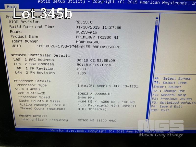 TOWER SERVER, FUJITSU PRIMERGY TX1330 M1, XEON E3-1231 V3 @ 3.4GHz, 32GB ECC DDR3 RAM, 1 x 1TB SATA HDD, 3 x 450GB SAS HDD, DVD-RW, 2 x PSU (NO CABLES) S/N:MAXM004506