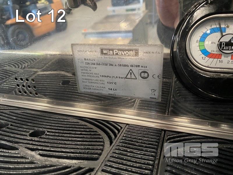 CAPPUCCINO MACHINE, LA PAVONI MOD: BAR2V 2 GROUP, TWIN STEAMER 240V (15A) TAG & TESTED