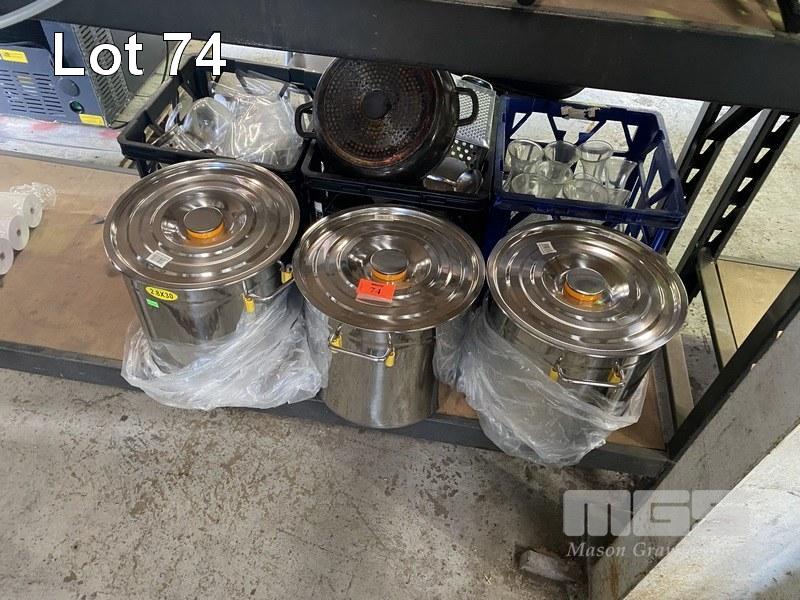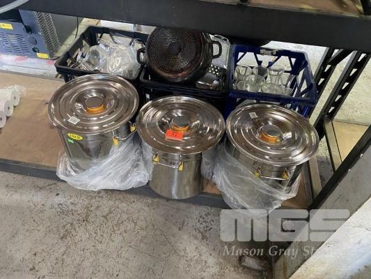 3 x STAINLESS STEEL STOCK POTS & SUNDRY ITEMS