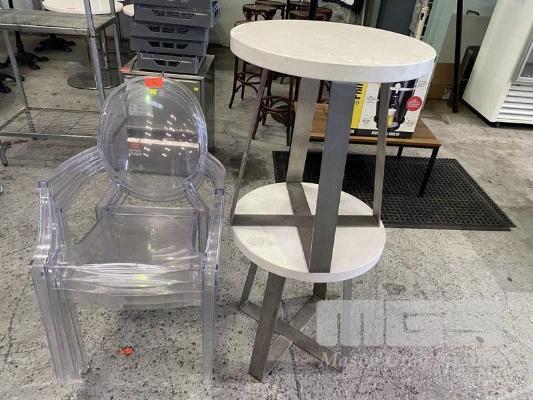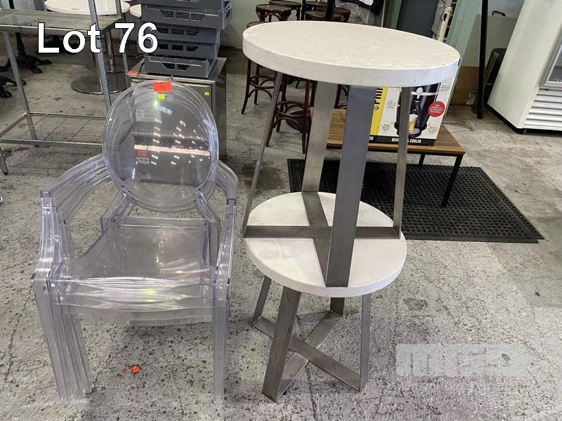 3 x PERSPEX STACKABLE CHAIRS 7 2 ROUND TABLES
