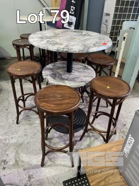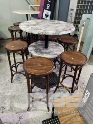 DRY BAR, 2 TIER, MOULDED TOPS 800mm (D) x 1100mm (H) WITH 5 x BENTWOOD BAR STOOLS