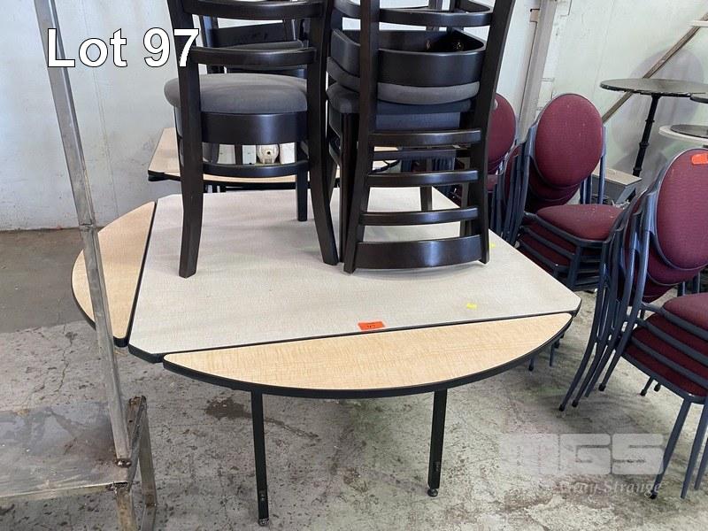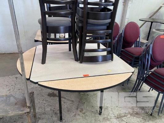 PAIR FOLD OUT TABLES, 110 x 110cm & 6 x CHAIRS