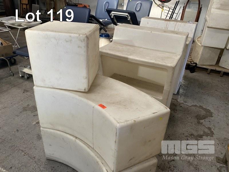 3 x POLY BARS, 90cm & 9 x ASSORTED SEATS