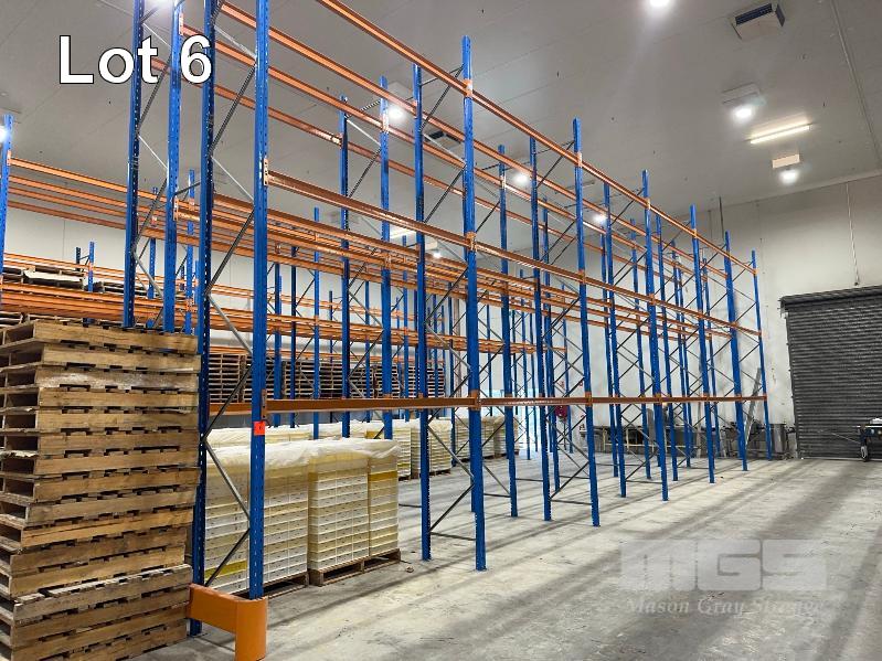 6 x BAYS DEXION PALLET RACKING, MODERN 90M COMPRISING: 7 x 6.5m UPRIGHTS, 36 x 2.8m CROSSBEAMS (NOT THE CONTENTS)