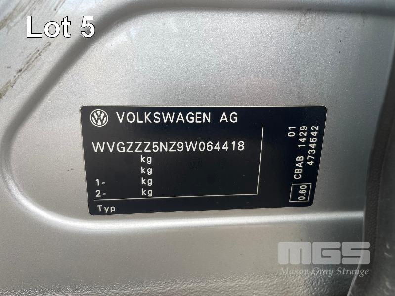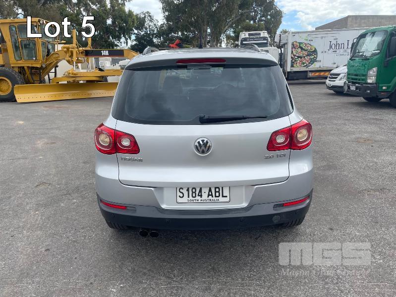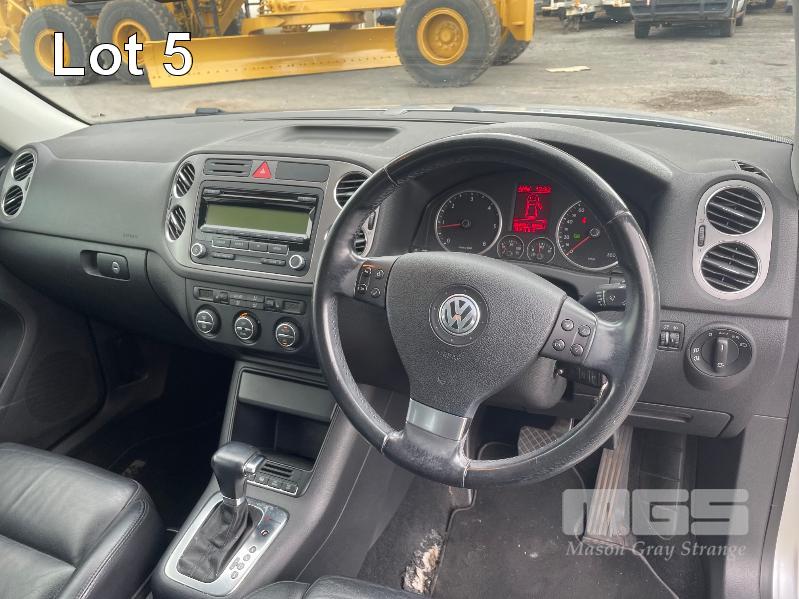2009 VOLKSWAGEN TIGUAN TDI 5NC MY09 HATCHBACK SEDAN FWD REG: S184ABL (SA) VIN: WVGZZZ5NZ9W064419 ODO: 266691 2.0L DTFI DT4 DIESEL, 6 SP AUTOMATIC TIPTRONIC, SILVER DUCO, 5 DOORS, 5 SEAT, FWD ABS, AIR BAG, AIR CON, ALLOY WHEELS, CD PLAYER, CENTRAL LOCKING, CRUISE CONTROL, LEATHER TRIM, POWER STEERING, PARKING SENSORS, NOTE: SERVICE DUE KEY #15 (WITH PAPERS, WITH 2 KEY/S, WITH OWNER'S MANUAL, WITH SERVICE BOOKS)