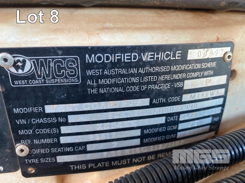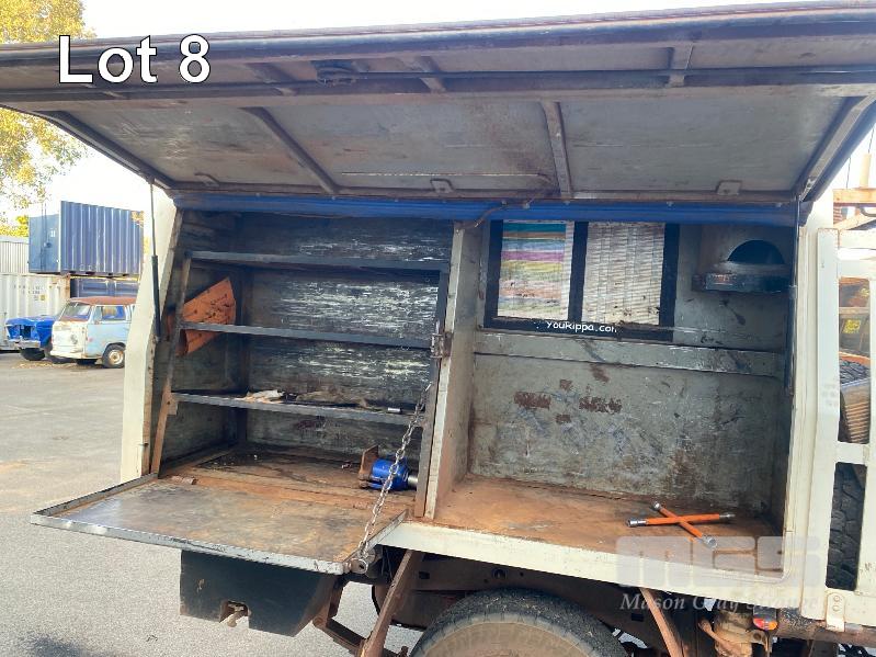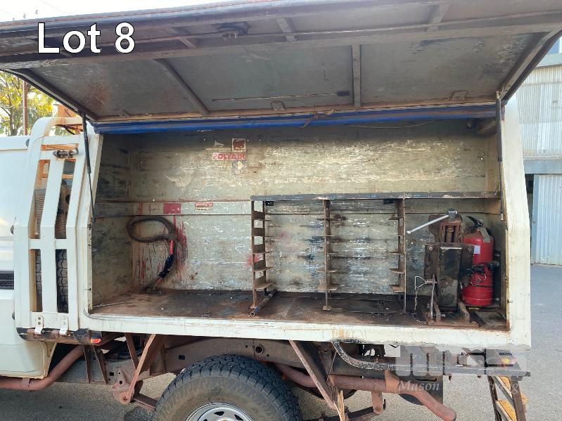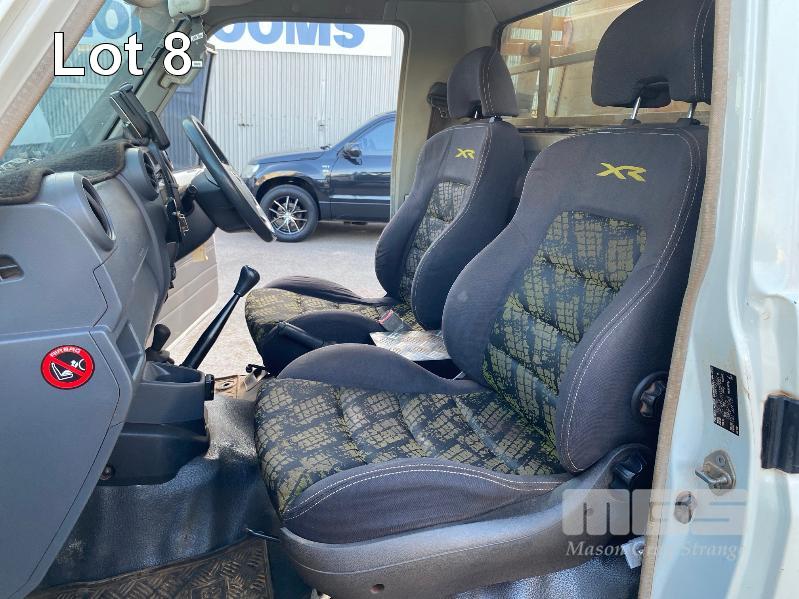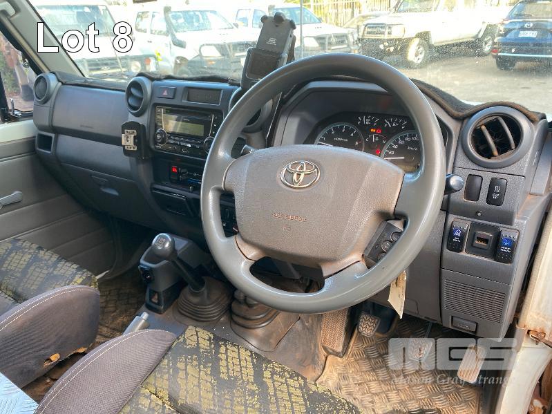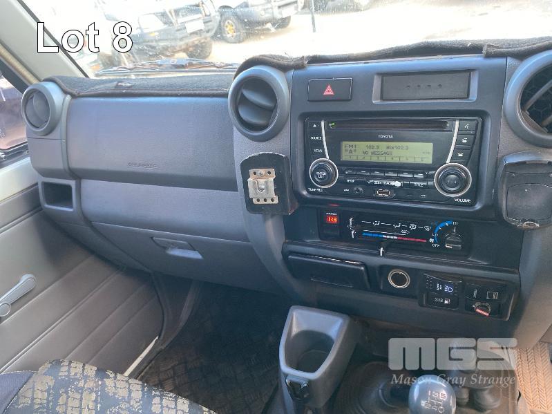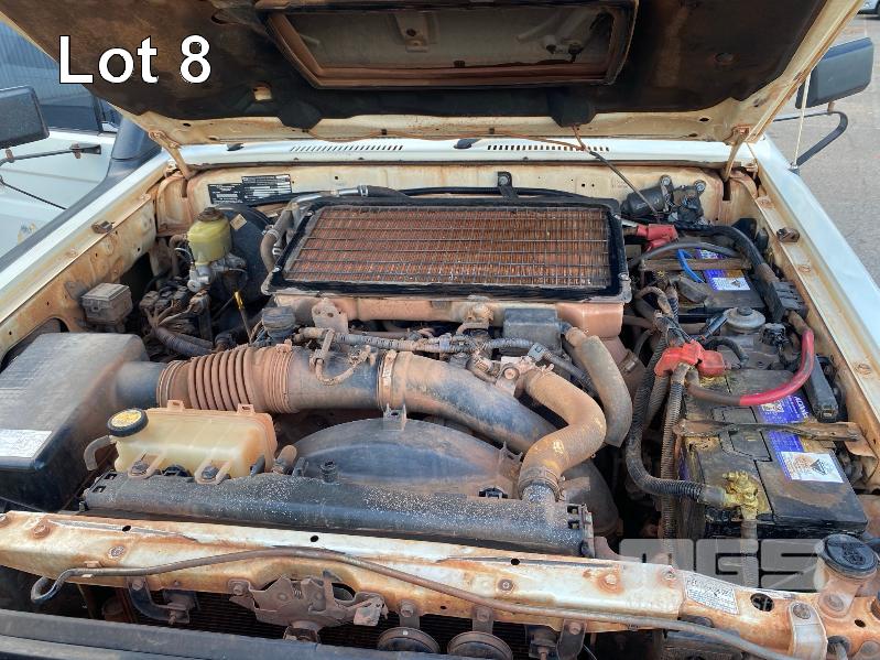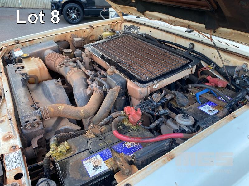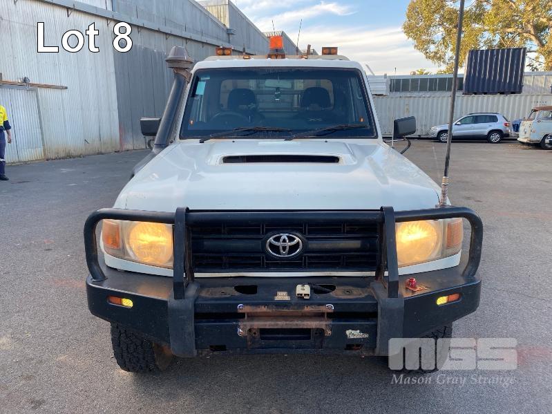 2012 TOYOTA LANDCRUISER VDJ79R-TJMRYQ3 SINGLE CAB SERVICE BODY 4x4 REG: NO PLATES VIN: JTELV71J600027990 ENG: 1VDO171655 ODO: 305,665kms SHOWING 4.5 LITRE V8 TURBO DIESEL, 5 SPEED MANUAL TRANSMISSION, WHITE DUCO, 2 DOORS, 2 SEAT, 4x4 AIR BAG, AIR CON, BULL BAR, CRUISE CONTROL, DECALS, SHELVING, SIDE STEP, TOW BAR, WARNING LIGHTS, 2 x SPARE WHEELS DUAL BATTERIES BATTERY ISOLATION SWITCH SUB FUEL TANK SERVICE BODY FITTED WITH GAS LIFT SIDE DOORS REAR HINGED STEP, SWING OUT VICE & WATER TANK KEY #11 (WITH 1 KEY/S)