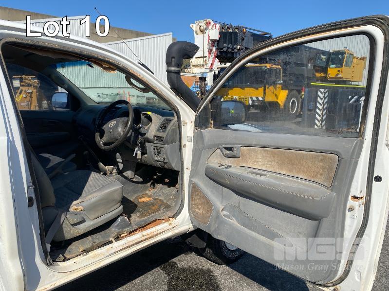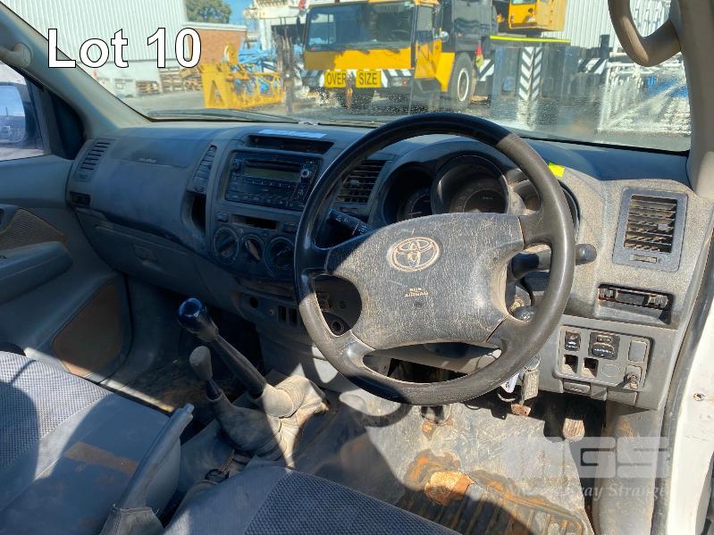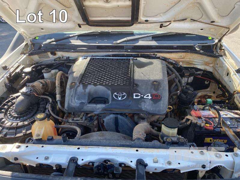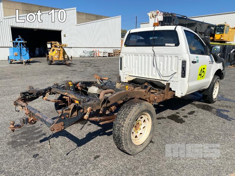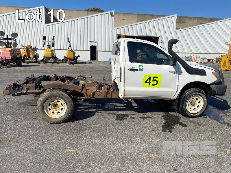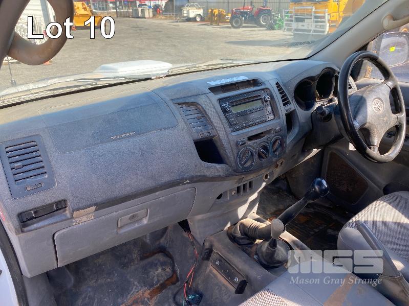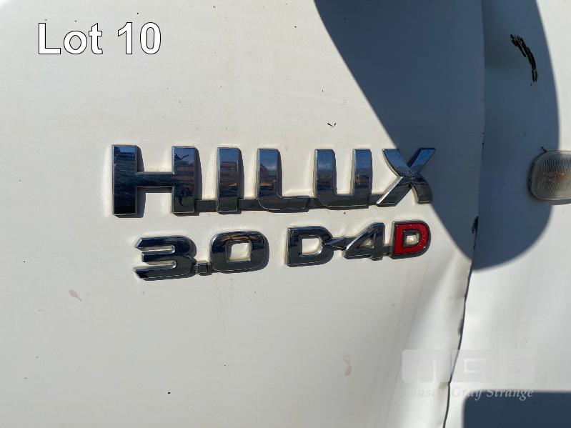 2008 TOYOTA HILUX KUN26R-TRMDVQS 150 SERIES SINGLE CAB CHASSIS 4x4 REG: XSS 069 (SA) VIN: MR0DZ22GX00010579 ENG: 1KD7545994 ODO: 266,564kms SHOWING PLANT NO: LV45 3.0 LITRE TURBO DIESEL, 5 SPEED MANUAL TRANSMISSION, WHITE DUCO, 2 DOORS, 3 SEAT, 4x4 AIR BAG, AIR CON, BULL BAR, POWER STEERING, TOW BAR, SNORKEL AIR INTAKE KEY #7 (WITH PAPERS, WITH 2 KEY/S, WITH OWNER'S MANUAL, WITH SERVICE BOOKS) CONDITION: BODY - DENTS & SCRATCHES