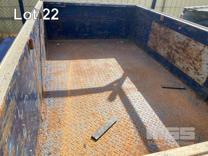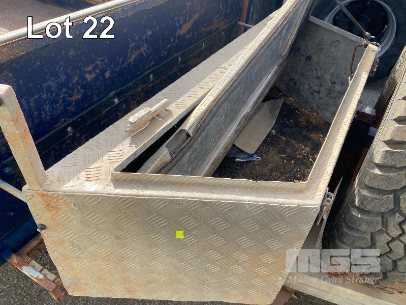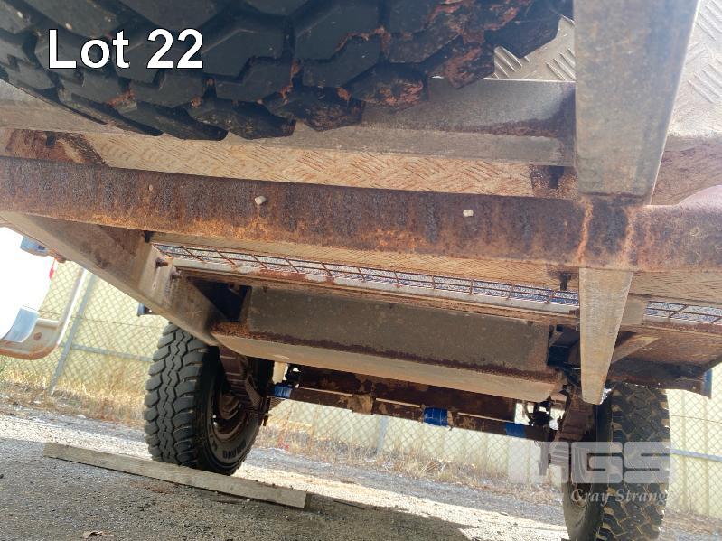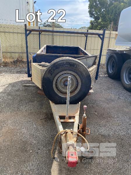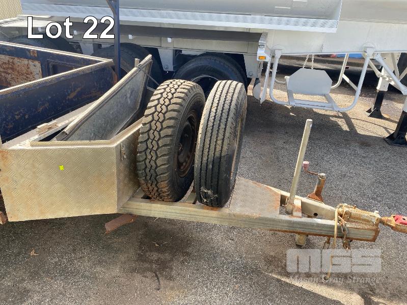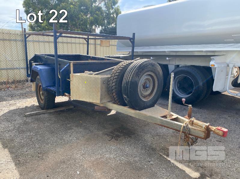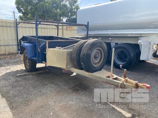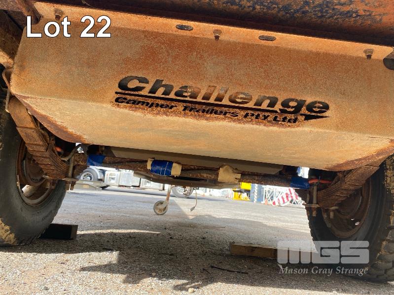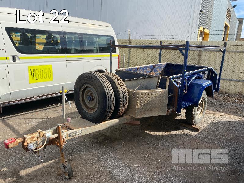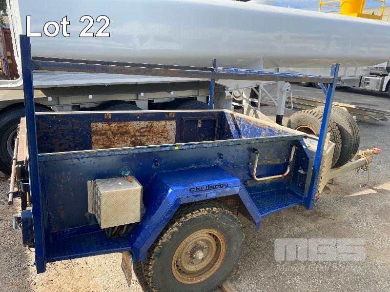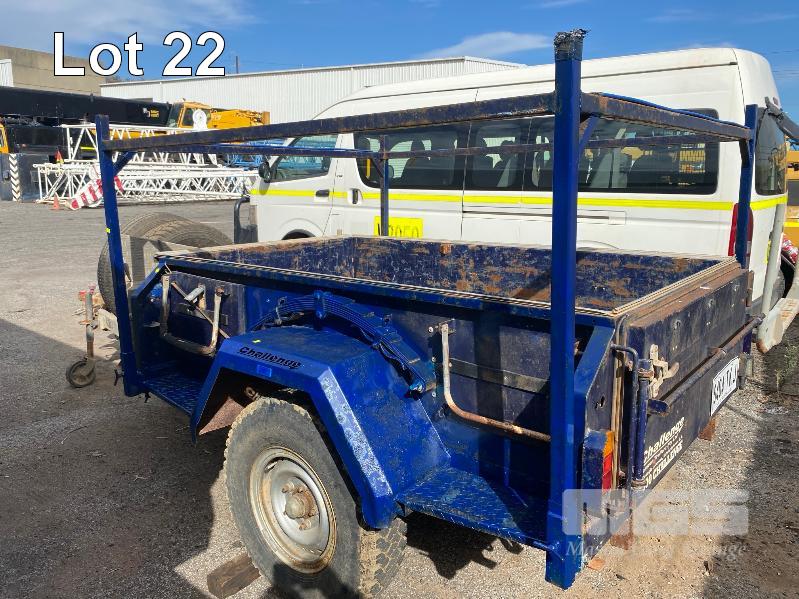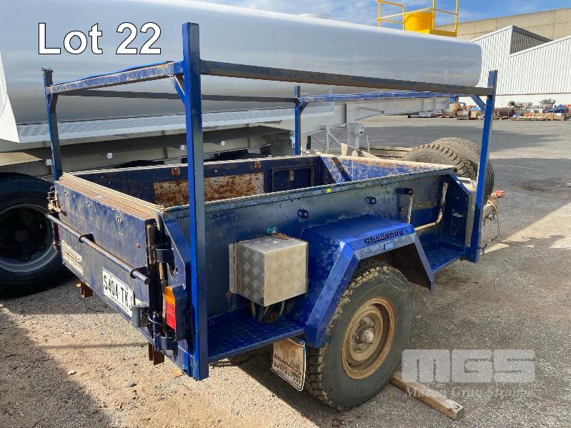 2013 CHALLENGE OFF ROAD TRAILER, SINGLE AXLE, 6.8x4ft REG: S404 TKJ (SA) VIN: 6T9T2000SD01ZZ075 TRAILER SIZE: 2100 x 1220mm, BLUE, UNIVERSAL PIN HITCH 2 x SPARE WHEELS OVERHEAD CARRY RACK CHECKER PLATE STEEL FLOOR ALLOY TOOL BOX "A" FRAME MOUNTED JOCKEY WHEEL REAR HINGED TAILGATE WITH REGISTRATION PAPERS