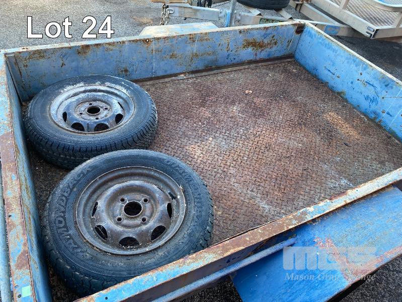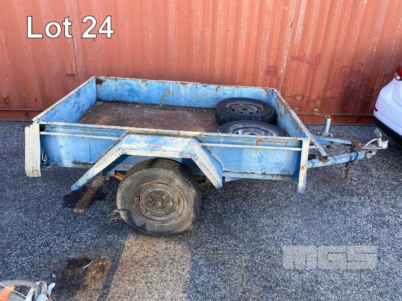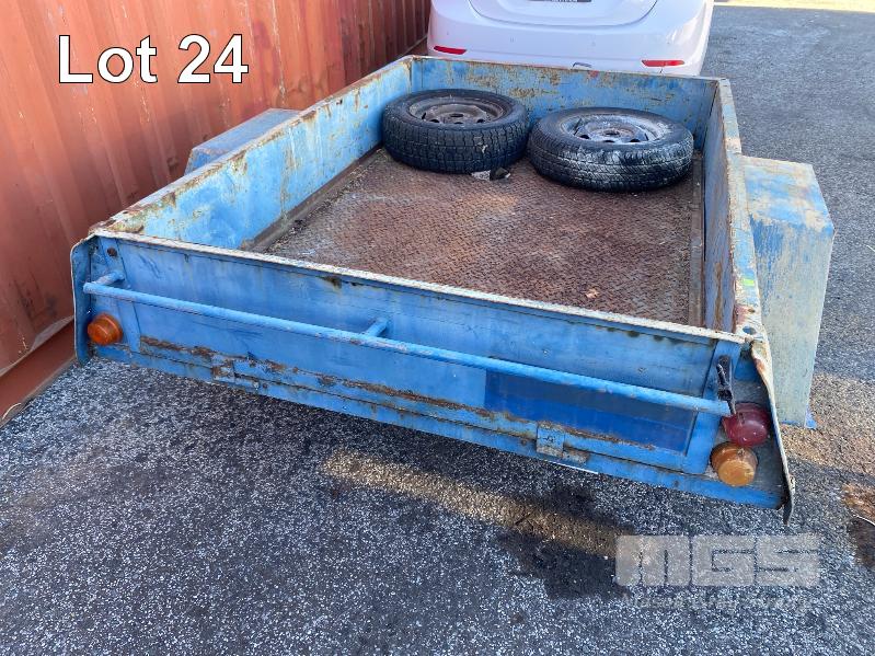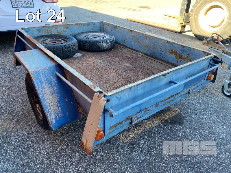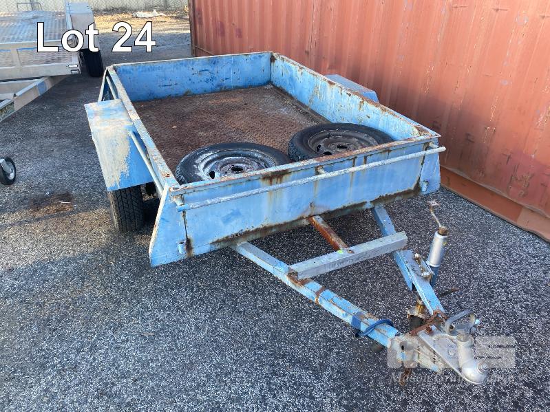 TRAILER, SINGLE AXLE, 6x4' REG: NO PLATES BALL HITCH, JOCKEY WHEEL 2 x SPARE WHEELS, BLUE, RUSTY