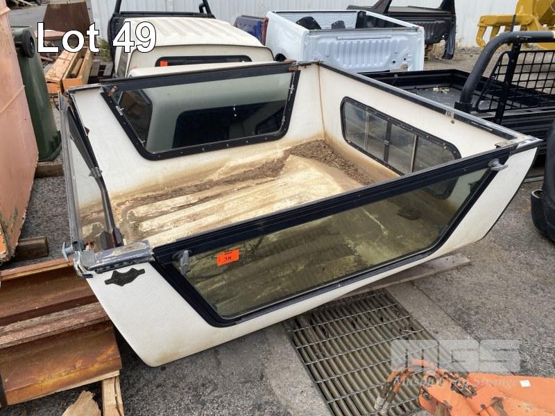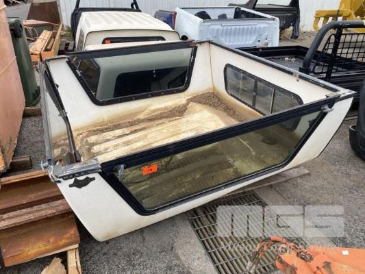2 x FLEXIGLASS UTE CANOPY'S, SLIDE WINDOWS, REAR GAS LIFT HATCH, 1600 x 1550mm & OYHER WITH SLIGHT DAMAGE TO ROOF (CRACKED) 1800 x 1900mm
