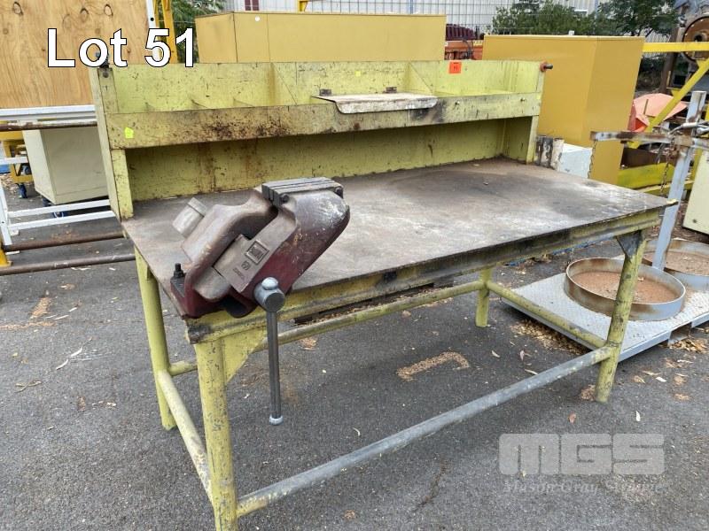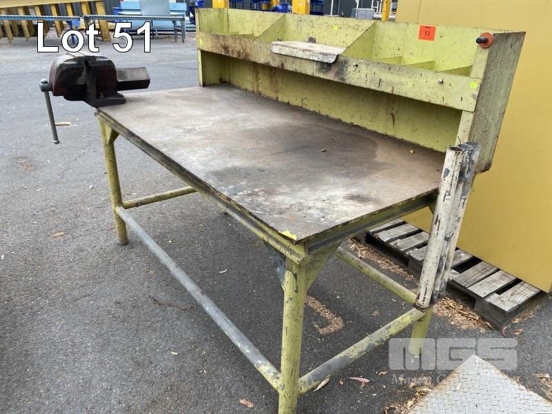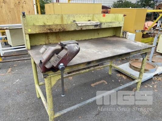 PLATE TOP WORKBENCH, 1800 x 900 x 900mm (H) WITH SHELF BACK STOP & OFFSET VICE, DAWN 150mm