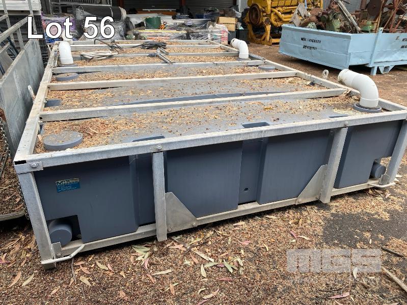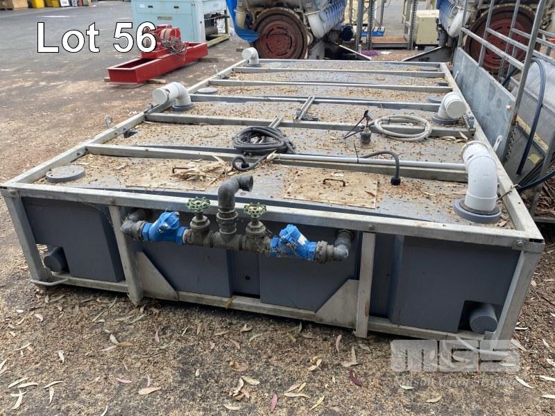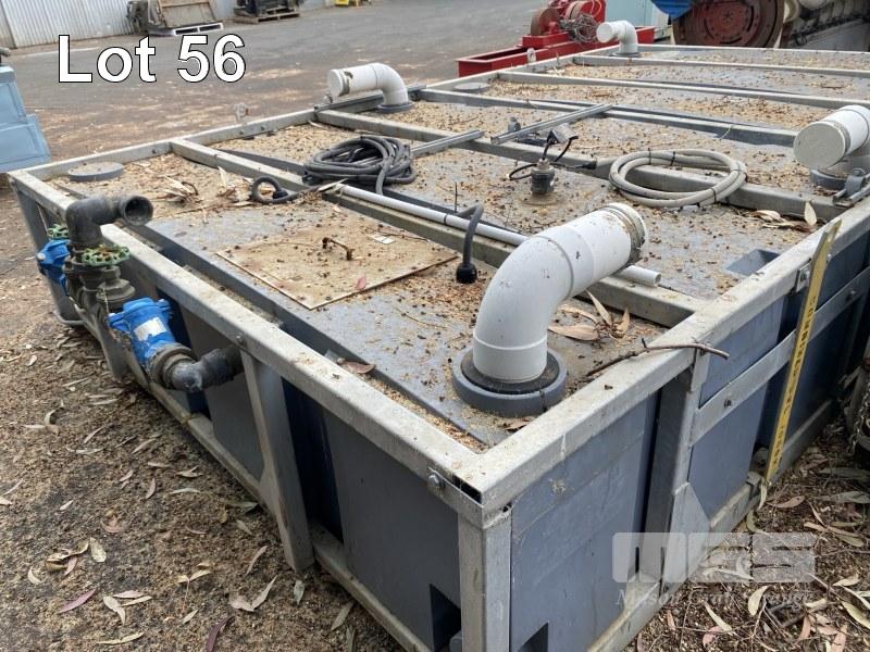 ABLUTION BLOCK, SEPTIC/WASTE SYSTEM COMPRISING 2 x POLY TANKS, MEASURING 1800 x 2300 x 500mm MOUNTED IN ALV STEEL FRAME 3860 x 2380 x 700mm (H) PLUMBED WITH VALVES & FITTINGS