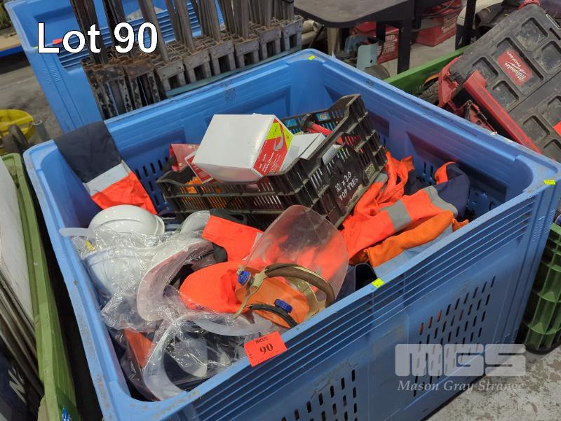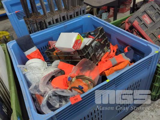 LARGE QUANTITY HI VIS CLOTHING, HARD HATS, SAFETY GLASSES, ETC 1 X NALLY BIN NOT INCLUDED
