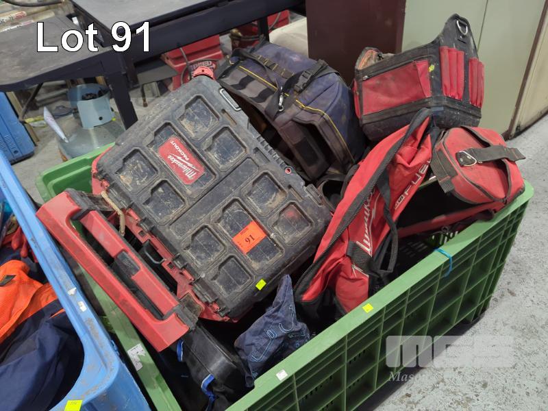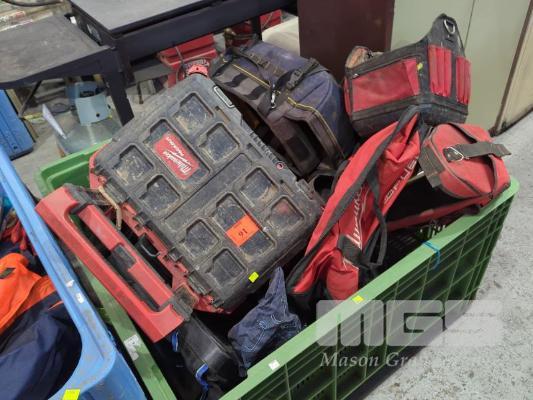 QUANTITY ASSORTED TOOL BAGS & TOOL TROLLEY 1 X BIN NOT INCLUDED