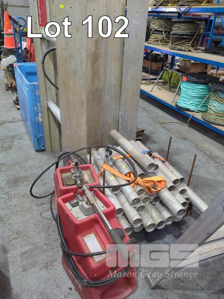 4 x ALUMINIUM VERTICAL SHORE, SPEED SHORE WITH EXTENSIONS & 2 x HYDRAULIC POWER PACKS