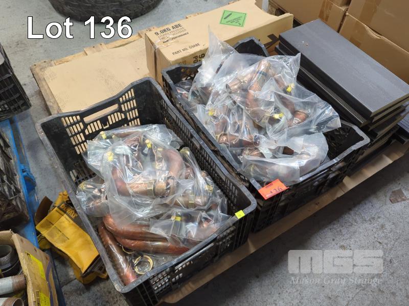 QUANTITY BRASS ELBOW GAS FITTINGS, 2 x TUBS