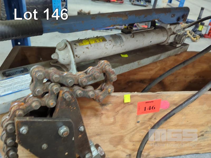 HYDRAULIC PIPE CUTTER, REX HEAVY DUTY WITH MANUAL HYDRAULIC POWER PUMP IN TIMBER CASE