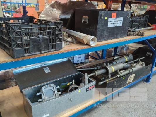 GAS MAIN PIPELINE TOOLS, ALH SYSTEMS LIMITED, BAG TUBE SYSTEM MOD: 115-9005 COMPRISING 4 x BAG TUBE ASSEMBLIES, DRILLING & TAPPING MACHINE, SADDLES, ETC RIGID PIPE CLAMP TOOL, PLUMB TEST GAUGES, ETC CONTENTS 3 x STEEL STORAGE CASES & 2 x PLASTIC TUBS 2 x SHELVES
