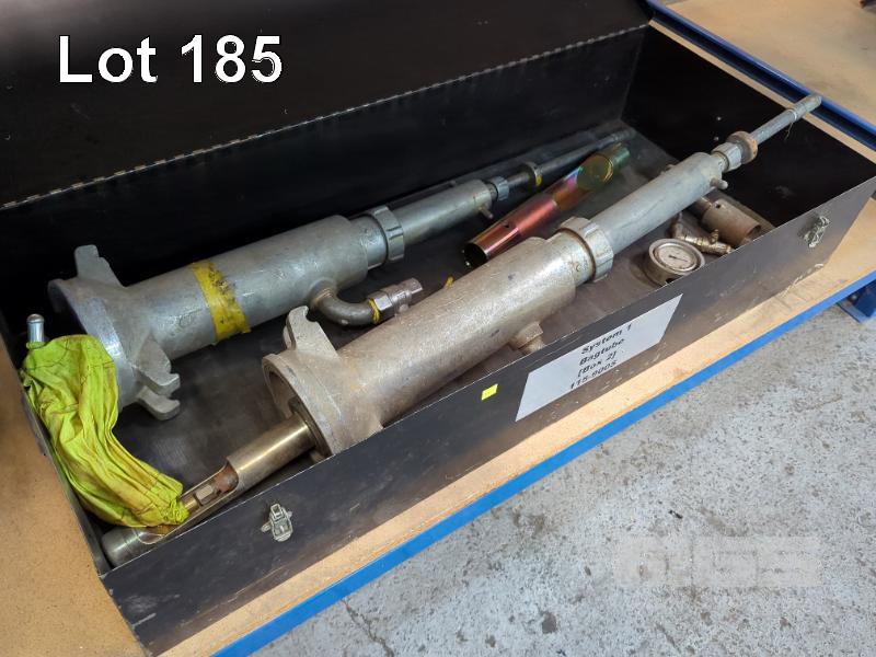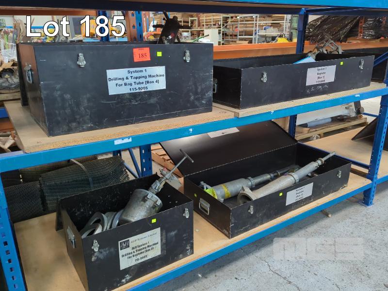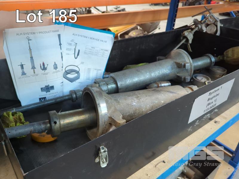 GAS MAIN PIPELINE TOOLS, ALH SYSTEMS LIMITED, BAG TUBE SYSTEM MOD: 115-9005 COMPRISING 4 x BAG TUBE ASSEMBLIES, INFLATION CONTROLLERS, BAG TUBE PLUG INSERTION, SADDLES, ETC CONTENTS 4 x STEEL STORAGE CASES 2 x SHELVES