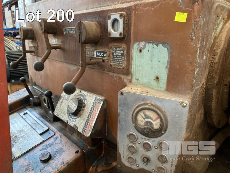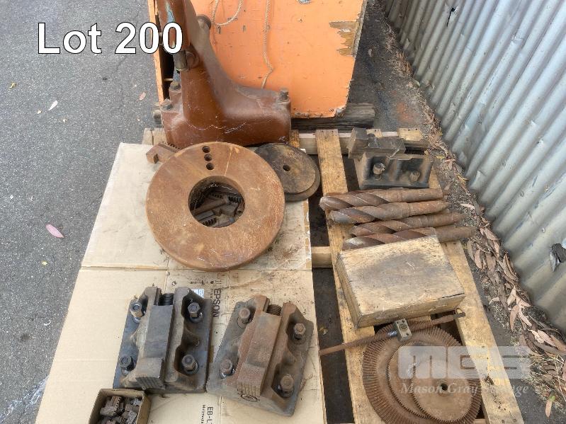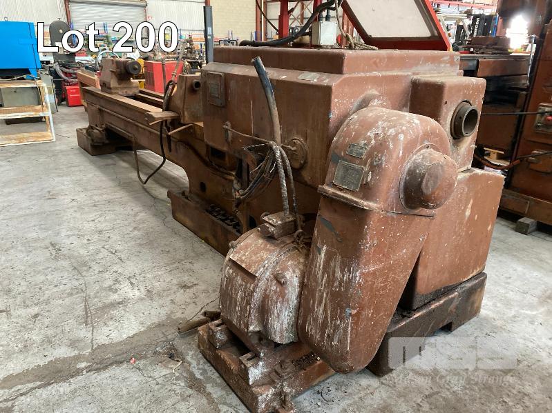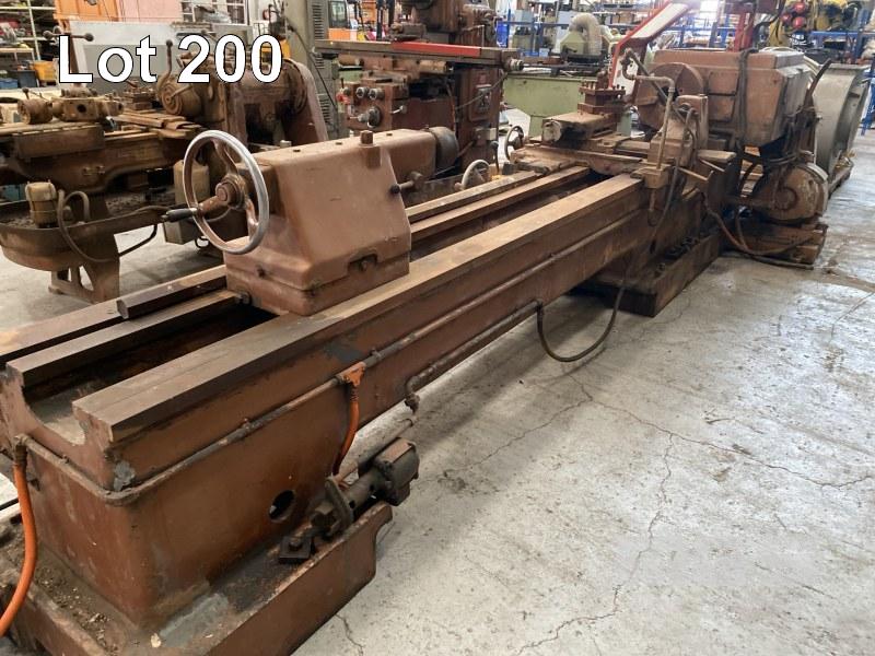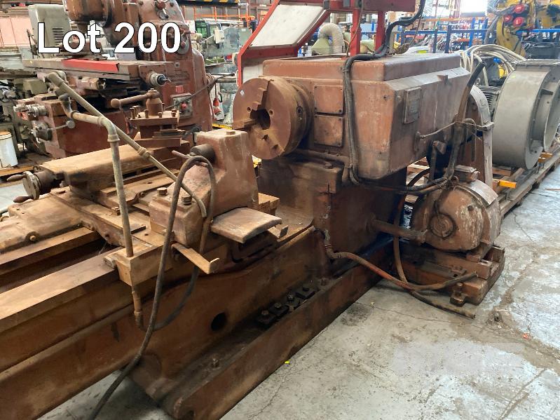LATHE, MACSON GAPPED BED LENGTH: 3700mm SWING: 500mm THROUGH BORE: 100mm 3 JAW CHUCK, TOOL HOLDER INCLUDING 2 x TOOL CABINETS AND CONTENCE COMPRISING OF: FACE PLATES, 4 JAW CHUCK, STEADIES, M/T DRILL BITS, TOOL HOLDERS, MOUNTING PLATES, ETC. GUARDING, 415V