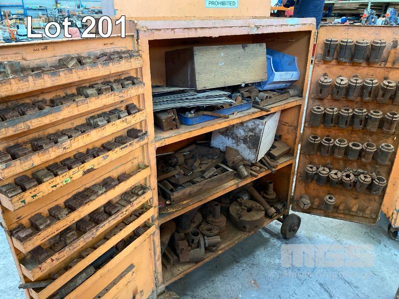 TURRET LATHE, WARD BED LENGTH: 1000mm 6 HEAD TURRET, 415V WITH TOOL CABINET FULL OF TOOLING TO SUIT INCLUDING COLLETS, THREAD CUTTERS, 3 JAW CHUCK, LIVE CENTERS, TOOL HOLDERS, ETC.