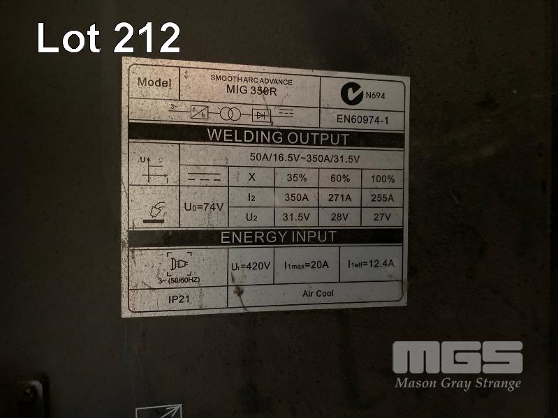 MIG WELDER 350R, BOC SMOOTHARC 415V WITH REMOTE WIRE FEED UNIT, LEADS, CABLES AND MIG HAND PIECE