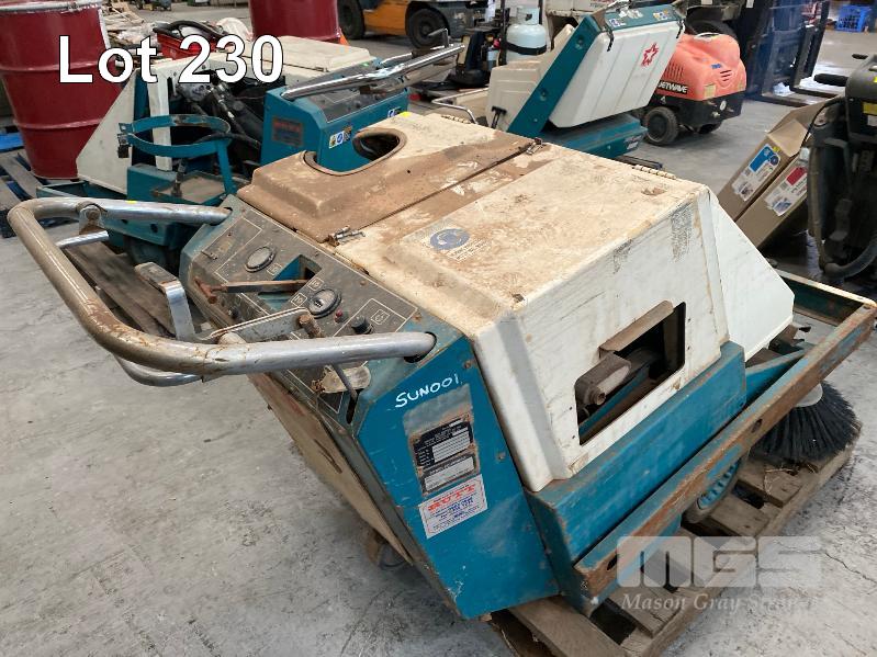WALK BEHIND POWERED SWEEPER, TENNANT LPG ENGINE HOURS: 3334 SHOWING