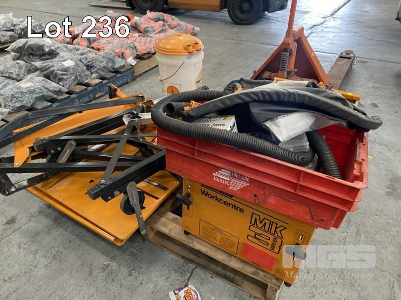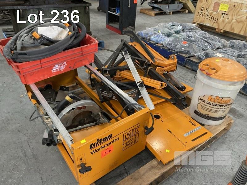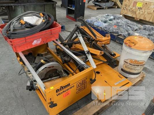 TRITON WORKCENTRE, MK3 NEW SERIES WITH ROUTER, JIGSAW TABLE, TRITON SUPER JAWS, DUST COLLECTION SYSTEM ATTACHMENTS & SKIL CIRCULAR SAW, 140V 1 x PALLET